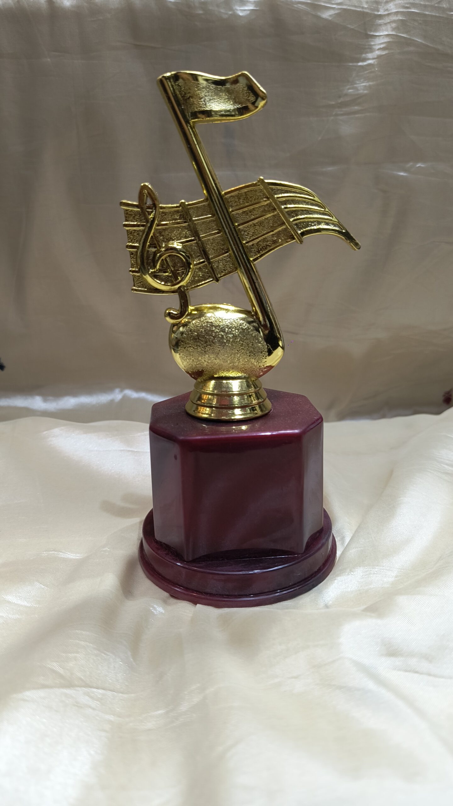 “Elegant trophy with a musical motif, crafted to celebrate talent, creativity, and excellence in the world of music.”